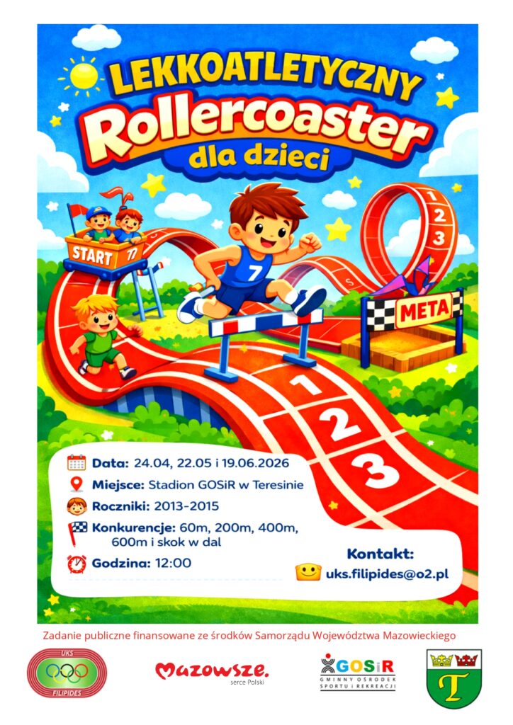 Już 24 kwietnia 2026 rozpoczniemy serię zawodów lekkoatletycznych skierowanych do dzieci z roczników 2013, 2014 i 2015. Do wyboru dwie konkurencje dla każdego uczestnika. Liczy się dobra zabawa! Dla naszych sportowców przygotowaliśmy pamiątkowe medale a dla najlepszych trójek nagrody specjalne. ZAPRASZAMY!!!
